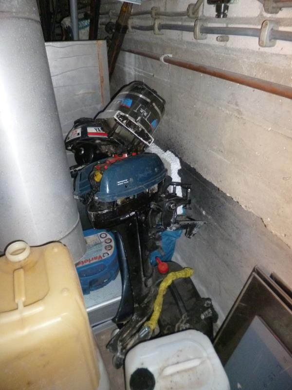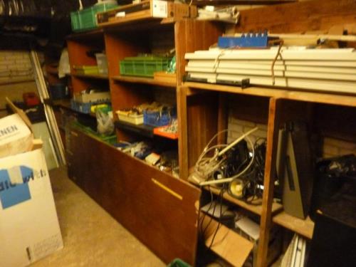 de inhoud van de ruimte w.o.steigermateriaal, buitenboordmotoren, kachels, verlichting etc. etc
