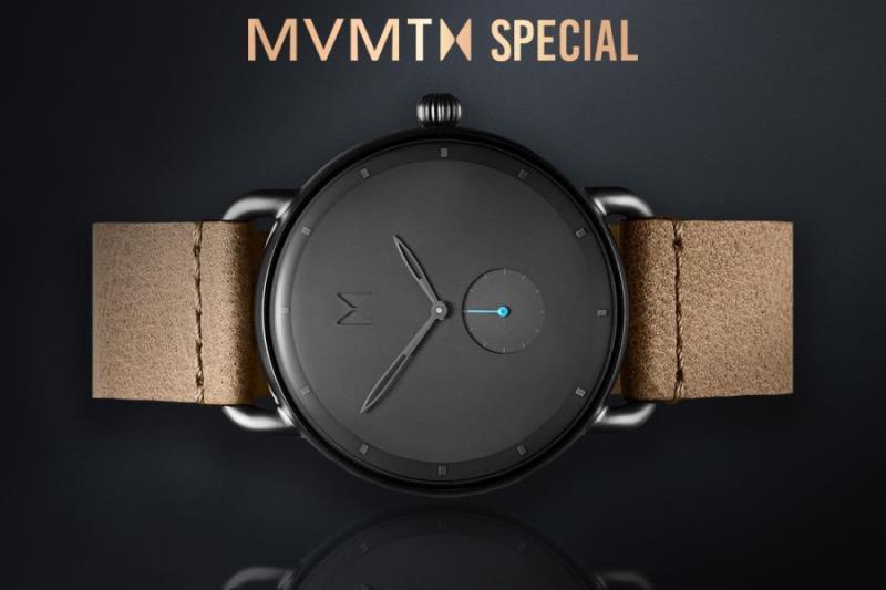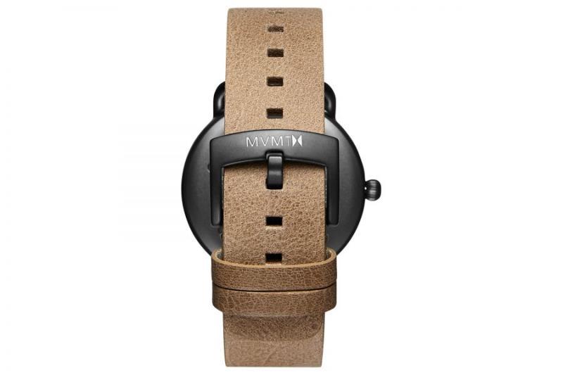 1 MVMT Revolver 41mm Vice D-MR01-GML, Quartz uurwerk, Seconds subdia,l Edelstalen kast en lederen band, 5 ATM waterbestendig, adviesverkoopprijs € 140