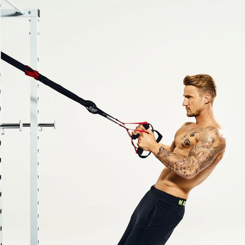 Product Suspension Trainer Kleur Rood / zwart ✔ Met zachte handgrepen voor meer comfort Belastbaarheid Tot 300 kg Training Eindeloos variëren met bodyweight training Materiaal Polyester ✔ Inclusief handige verpakking