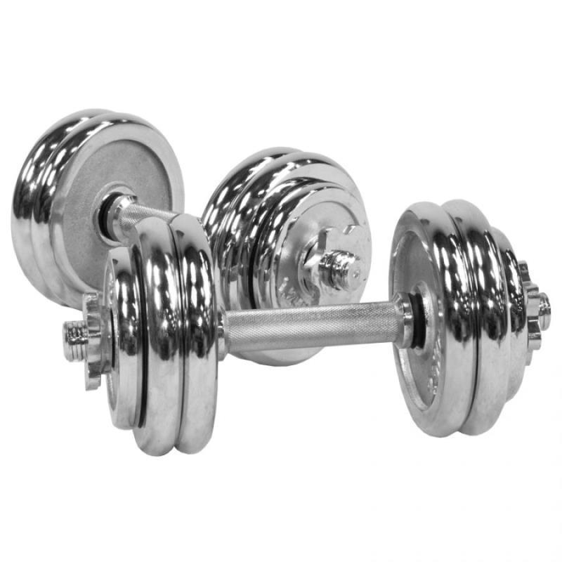 105 - 159 : Gorilla Sports Dumbellset 30 kg Chroom - Schroefsluiting
