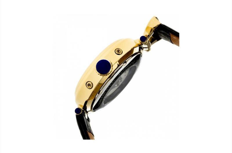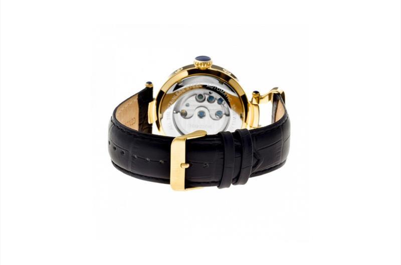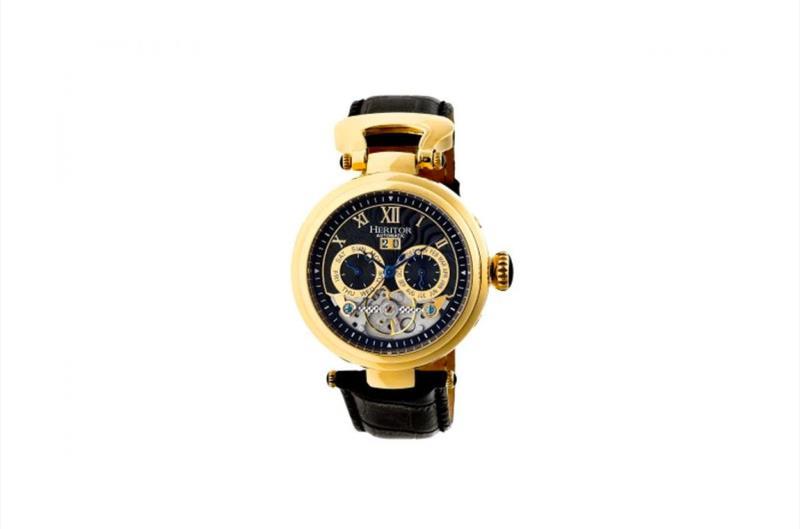 136 - 39 : Heritor Automatic Ganzi Semi-Skeleton Leather-Band Watch - Gold/Black - HERHR3304