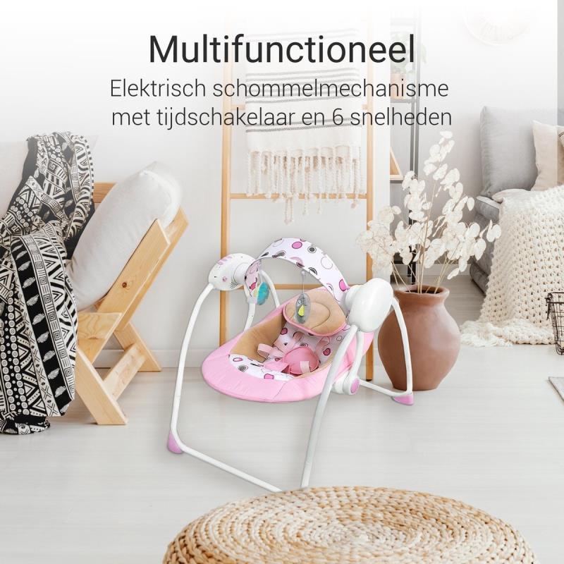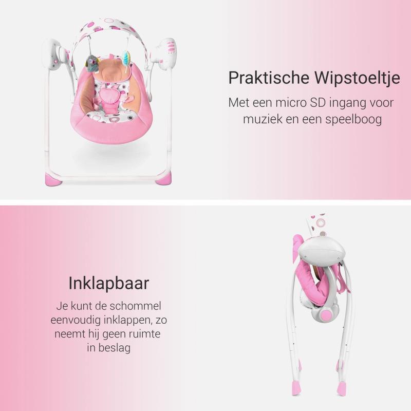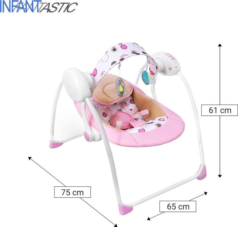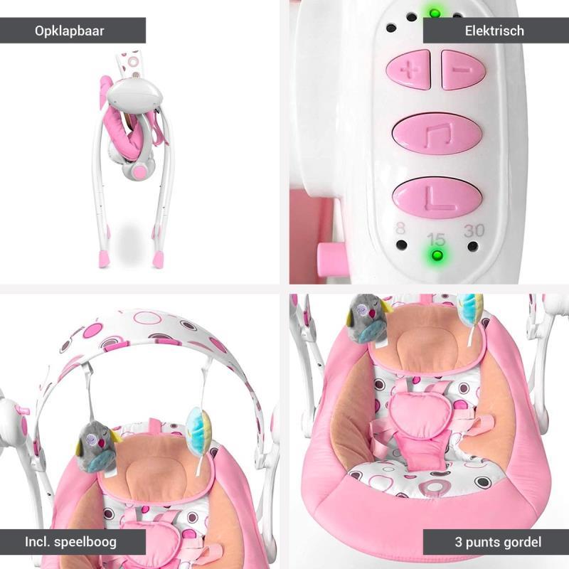 156 - 61 : Infantastic Wipstoel Baby – Elektrisch Schommel Mechanisme - 3 Punts Veiligheidsgordel – Roze - tot 12 Maanden