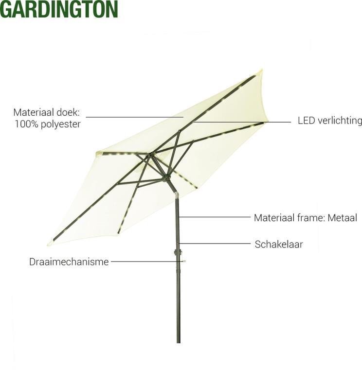 160 - 27 : Gardington Parasol – 270 cm - Creme - Kantelbaar - Aluminium - Verlichting op Zonne-Energie