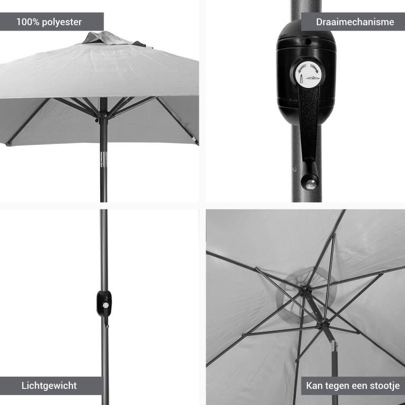 Het frame is gemaakt van aluminium. Hierdoor is de parasol uitermate licht en is daardoor makkelijk te verplaatsen of zelfs mee te nemen.