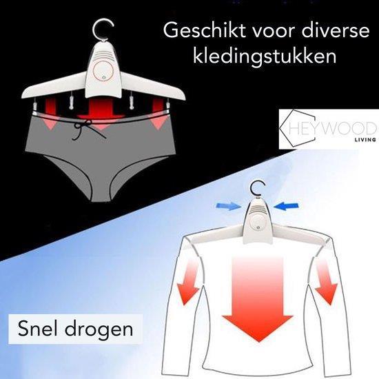 Met deze kledinghanger droog je gemakkelijk hemden, jurken, sokken, blouses, t-shirts en ondergoed. De hanger kan tot 5 kg aan gewicht dragen, schakelt na 3 uur automatisch over naar koude lucht en zet zichzelf na 6 uur uit.