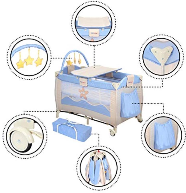 ✔ Inhoud Verpakking: 1 x campingbedje, 1 X speelboog, 1 X aankleedkussen 1 X draagtas