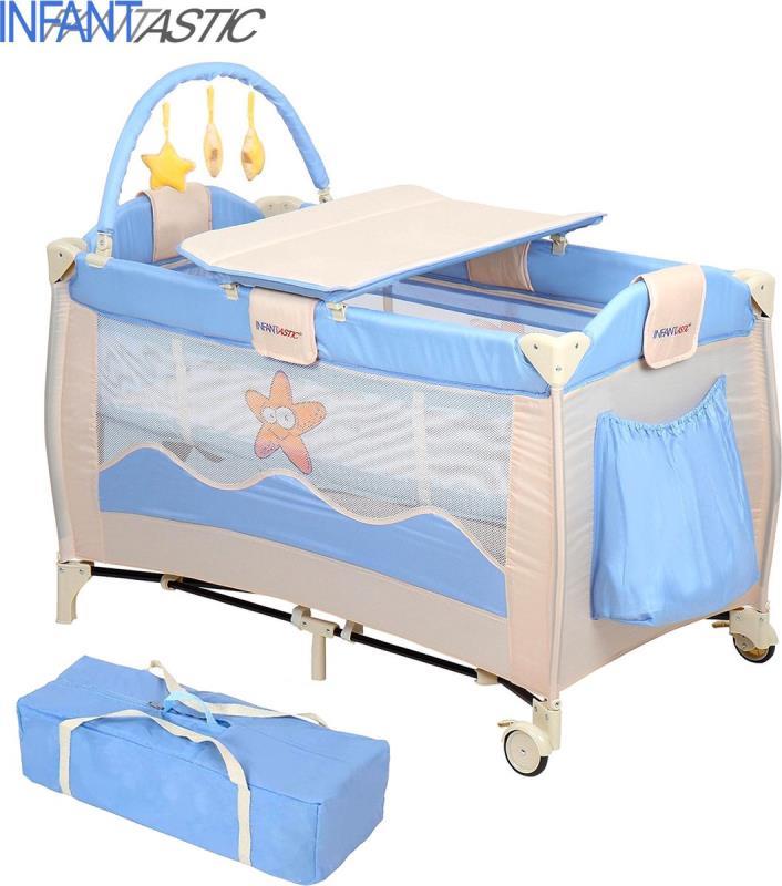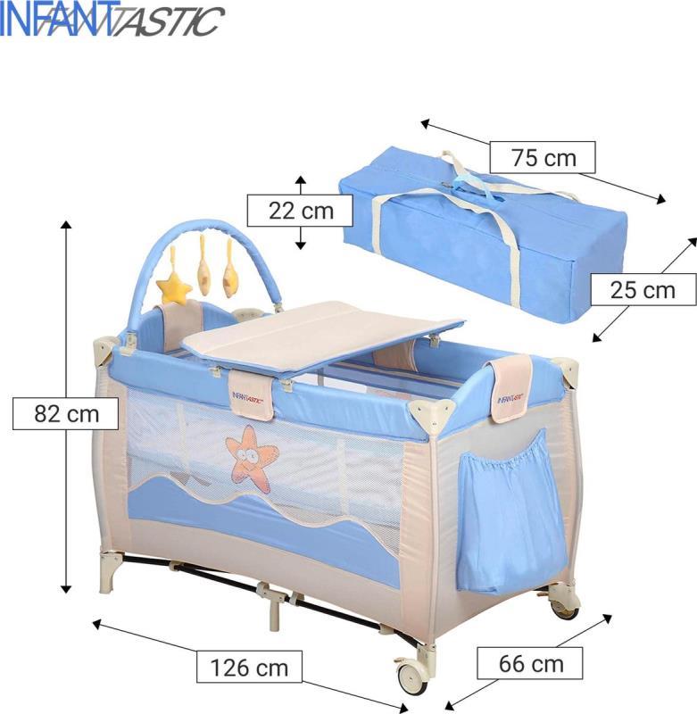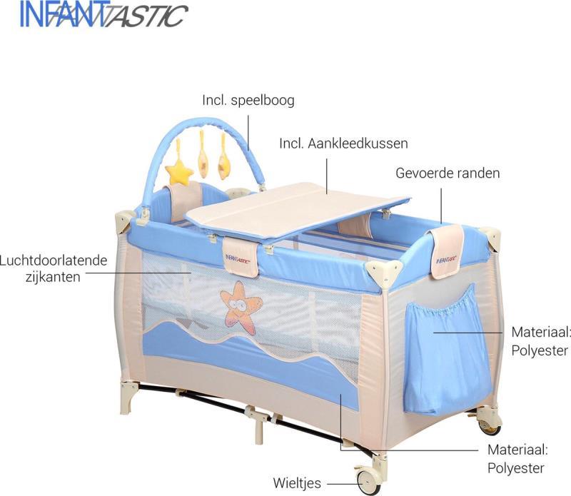 Het campingbedje van Infantastic is zeer uitgebreid en makkelijk mee te nemen. Hij is eenvoudig in- en uit te klappen en ook de meegeleverde draagtas maakt hem erg handzaam. Een uitkomst voor bijvoorbeeld logeerpartijtjes, vakanties, etentjes of bezoek .