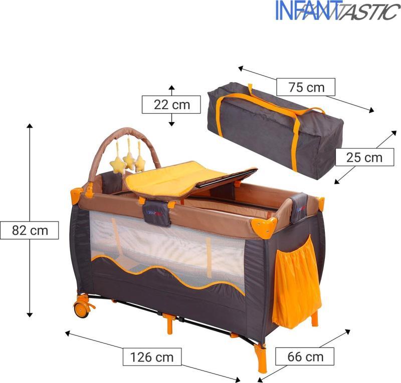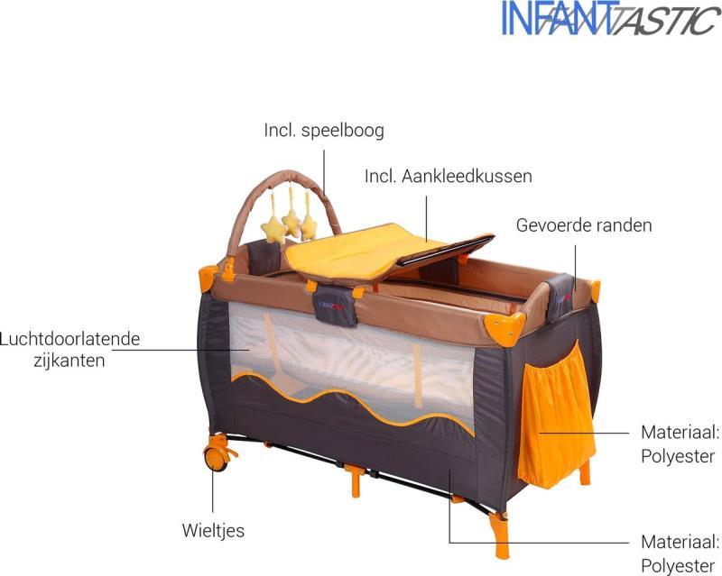 Het campingbedje van Infantastic is zeer uitgebreid en makkelijk mee te nemen. Hij is eenvoudig in- en uit te klappen en ook de meegeleverde draagtas maakt hem erg handzaam. Een uitkomst voor bijvoorbeeld logeerpartijtjes, vakanties, etentjes of bezoek .