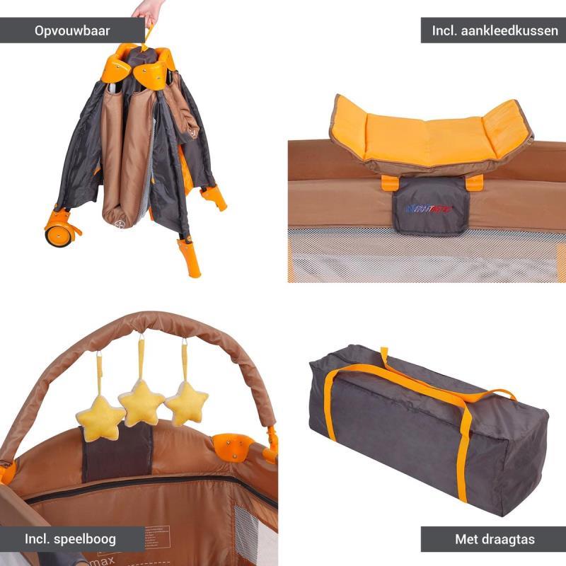 ★ Inclusief aankleedkussen, speelboog, opbergvak en draagtas