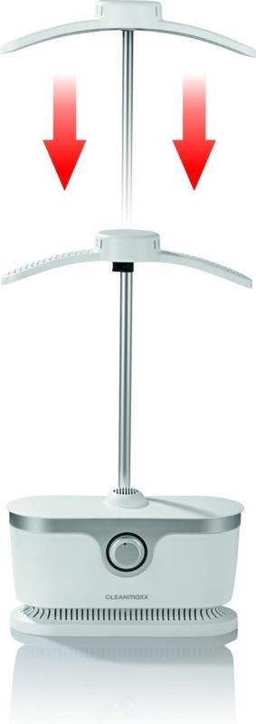 Strijkijzer en droger in één! Naast het kreukvrij maken van uw overhemden, blouses, truien en T-shirts, blaast deze Cleanmaxx uw kleding binnen enkele minuten droog. Plaats het gecentrifugeerde overhemd, blouse, T-shirt of trui over de opblaasvorm van de Cleanmaxx en met de bijgevoegde klemmen bevestigen. De timer op de gewenste duur zetten en de opblaasvorm blaast zich op en geeft tegelijkertijd warmte af aan het kledingstuk. Volledig automatisch! Droogt en strijkt uw kleding automatisch in één keer. Kleding in slechts enkele minuten droog en kreukvrij. Voor bovenkleding; shirts, blouses en overhemden die geschikt zijn voor wasdrogers. Aanzienlijk zachter dan wasdroger en strijkijzer. Tijd en kostenbesparend. Makkelijk in gebruik, functioneel en ruimtebesparend design. Makkelijke montage. Voor nagenoeg alle confectiematen. Afmetingen 100 x 16.2 x 58.5 cm (hxbxd). Vermogen 1800 Watt. Gewicht 2 kg. 220-240 V. 50 Hz. Leveringssamenstelling: 1x beugel, 1x telescoopstang, 1x motoreenheid, 1x nylon-ballon, 5x klemmen met geïntegreerd gewicht, 1x druppelbeveiliging incl. montagemateriaal (schroefmoer, schroef, combinatiesleutel), voedingskabel met AC-stekker. Goed om te weten: Het kost het apparaat gemiddeld tot 15 minuten per hemd om deze kreukvrij te maken Dit apparaat is volgens gebruikers luider dan een gemiddelde stoomreiniger Het apparaat is ontworpen voor het drogen en strijken van textiel, maar u dient altijd de waslabels van het textiel te controleren. Dit is leidend.