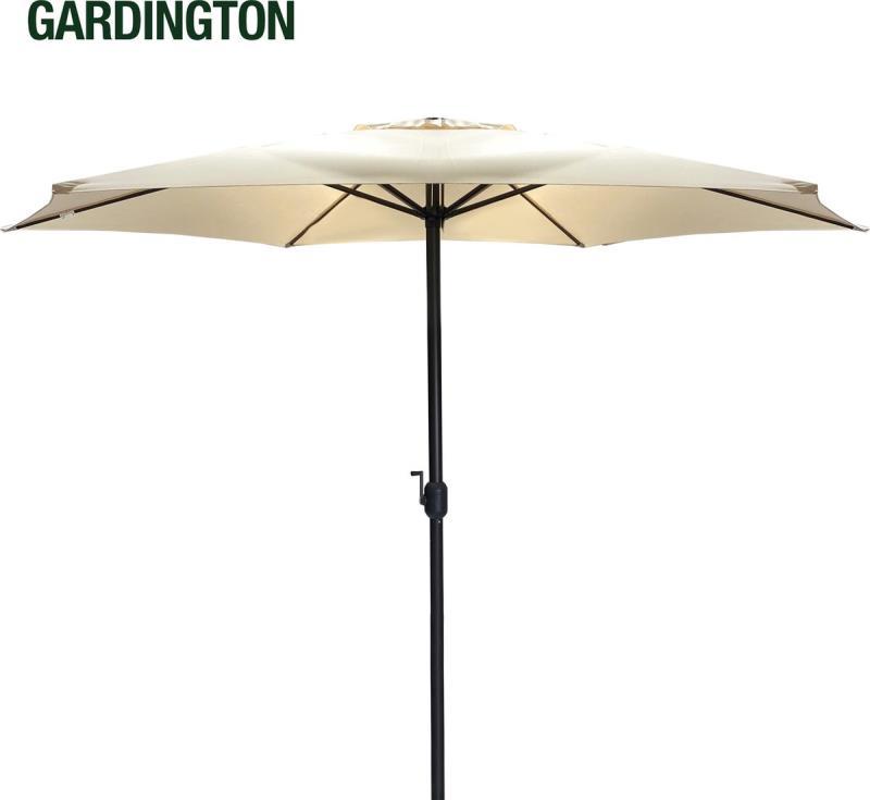 Parasol Ecru Ø300 cm voor Tuin en Terras | met handig opdraaisysteem Specificaties Kleur: Zwart Materiaal doek: Polyester Materiaal paal: Aluminium Materiaal ribben: Staal Aantal ribben: 6 Diameter: 300 cm Hoogte: 255 cm Mechanisme: zwengel/opdraai Met deze parasol kun je onbezorgd van de zon genieten. Voor moeiteloos in- en uitklappen is de parasol voorzien van een handig opdraaimechanism