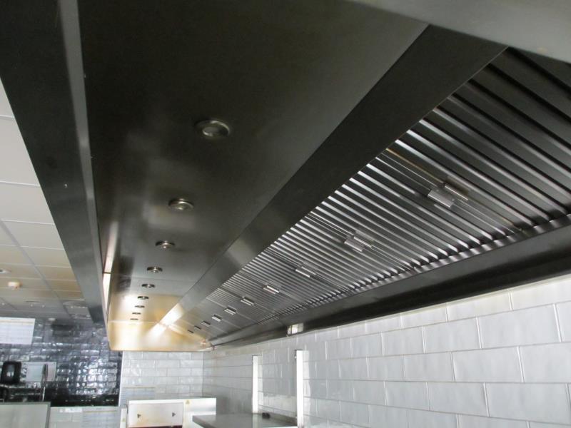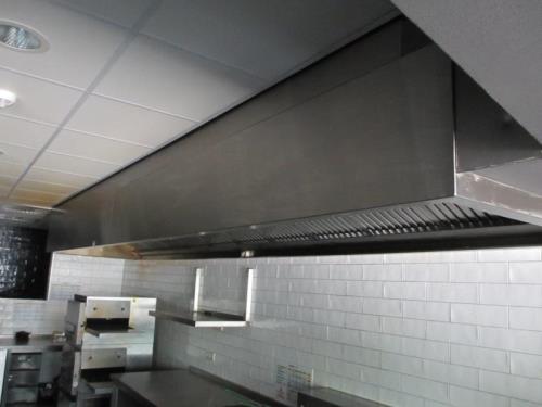 de rvs afzuigkap, afm. ca. 600 cm. en afzuigmotor. (de afzuigmotor bevind zich op de overkapping aan de achterzijde van het pand) EXCLUSIEF KOKERWERK