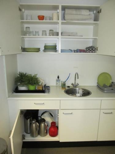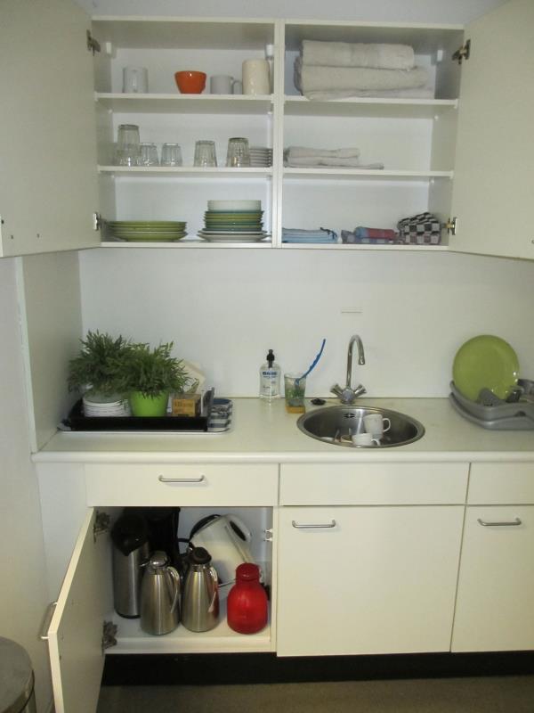 de inhoud van de keukenkasten w.o. serviesgoed, bestek, glaswerk etc.