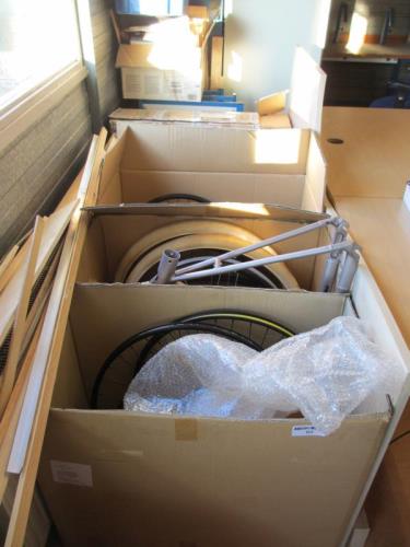 216 - 63 : 4 dozen met voorraad w.o. fietsbanden en fietsvelgen