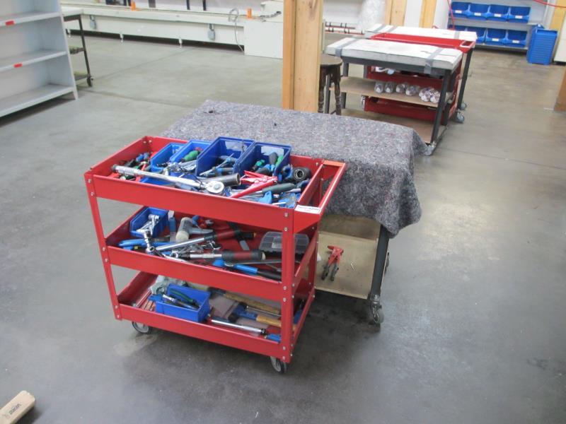 216 - 106 : 2 verrijdbare werktafels inclusief gereedschap