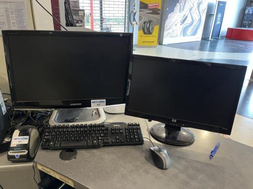 221 - 60 : 1 Fujitsu desktopcomputer met 1 Samsung monitor en 1 HP monitor