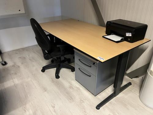 1 i.h.v. bureuatafel met ladeblok en bureaustoel