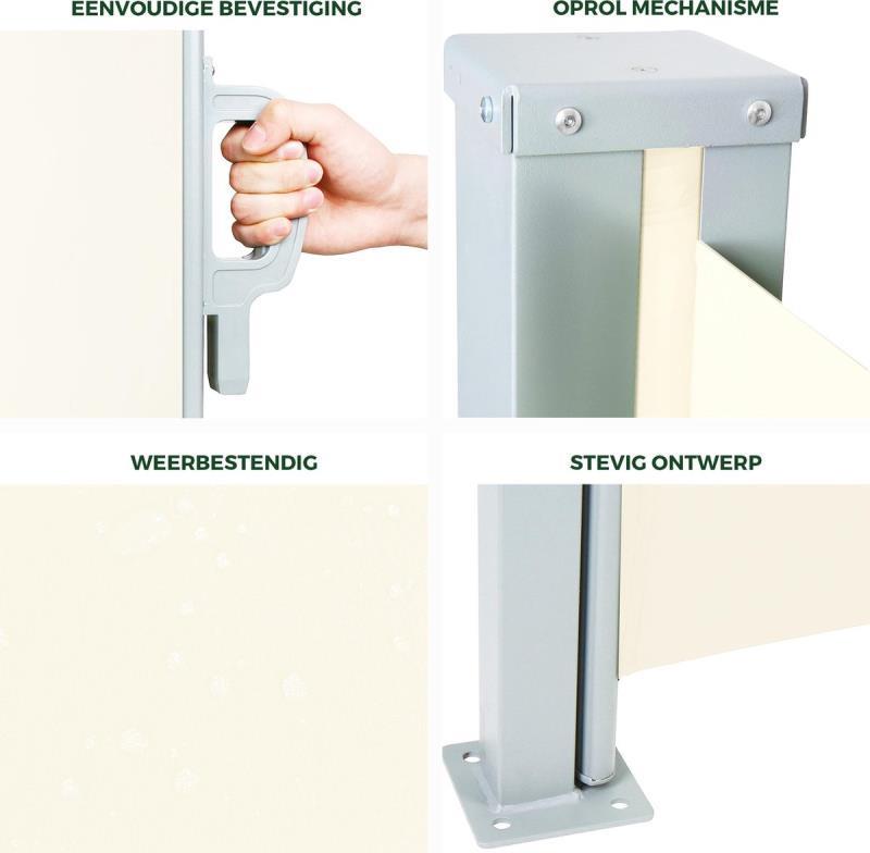 244 - 140 : Miadomodo Windscherm Uittrekbaar –160cm (hoogte) X 300cm (lengte) – Crème