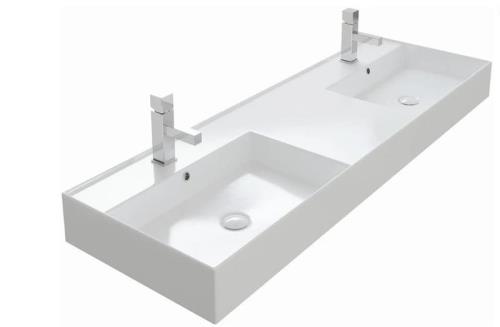 249 - 349 : Thebalux Twenty wastafel keramiek met dubbele kom met kraangat 140 cm, wit glans glans