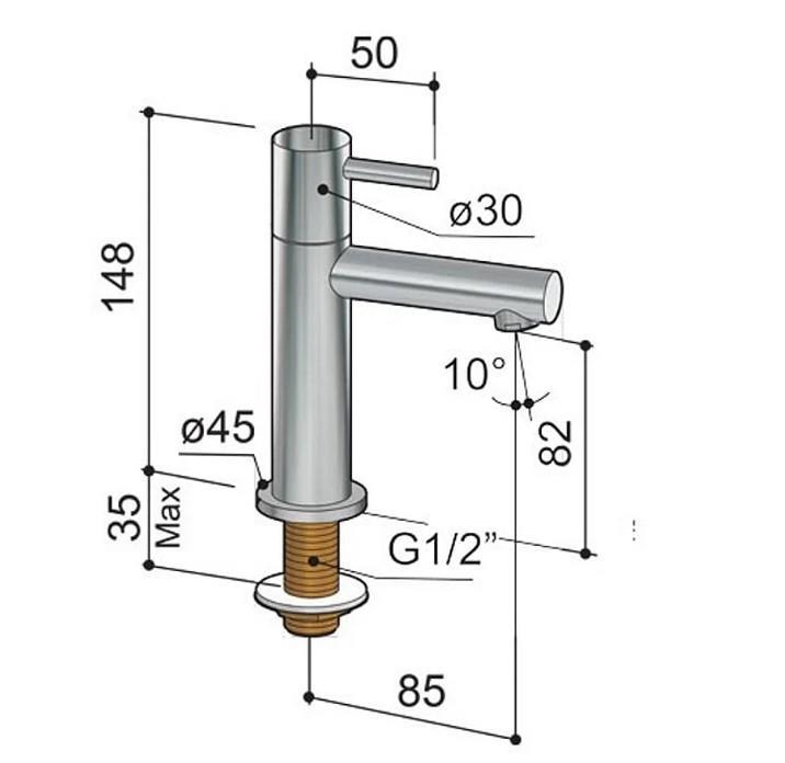 Winkelverkoopprijs € 135 De Hotbath Dude 1-hendel fonteinkraan is een moderne en praktische kraan die vrijwel in iedere badkamer/toilet past. De kraan is in 15 kleuren verkrijgbaar. Let op: op de afbeelding met het Badkamerwinkel-logo wordt de correcte kleur getoond. Let op: deze afwerking staat voor een pure metaalfinish. Deze zal of kan door gebruik en invloeden van buitenaf verkleuren (oxideren) en een natuurlijk patina vormen. Deze eigenschap hoort bij het aangeschafte product. Voor deze finish kan eventueel de natuurlijk gevormde patina worden gepoetst d.m.v. zilver- of koperpoets. Belangrijk advies bij gebruik waterontharder Bij gebruik van een waterontharder dient men rekening te houden met de afstelling volgens het advies van de leverancier. Verkeerd ingestelde waterontharders kunnen onherstelbare schade veroorzaken aan metaaloppervlaktes die direct met indrogend douche- of badwater in aanraking komen. Deze schades zijn duidelijk herkenbaar aan een zogenaamd sinaasappeleffect op glansfinishes of onuitpoetsbare vlekken op geborstelde finishes. Op deze wijze aangetaste Hotbath-producten vallen buiten iedere vorm van garantie.