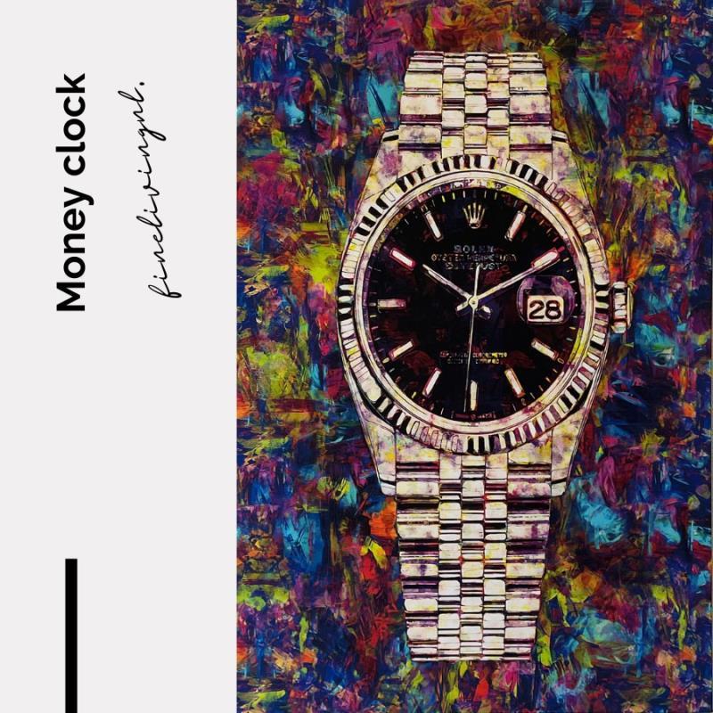 Money Clock 60x90 CM - Canvas Wanddecoratie - Art. Nr. 3010