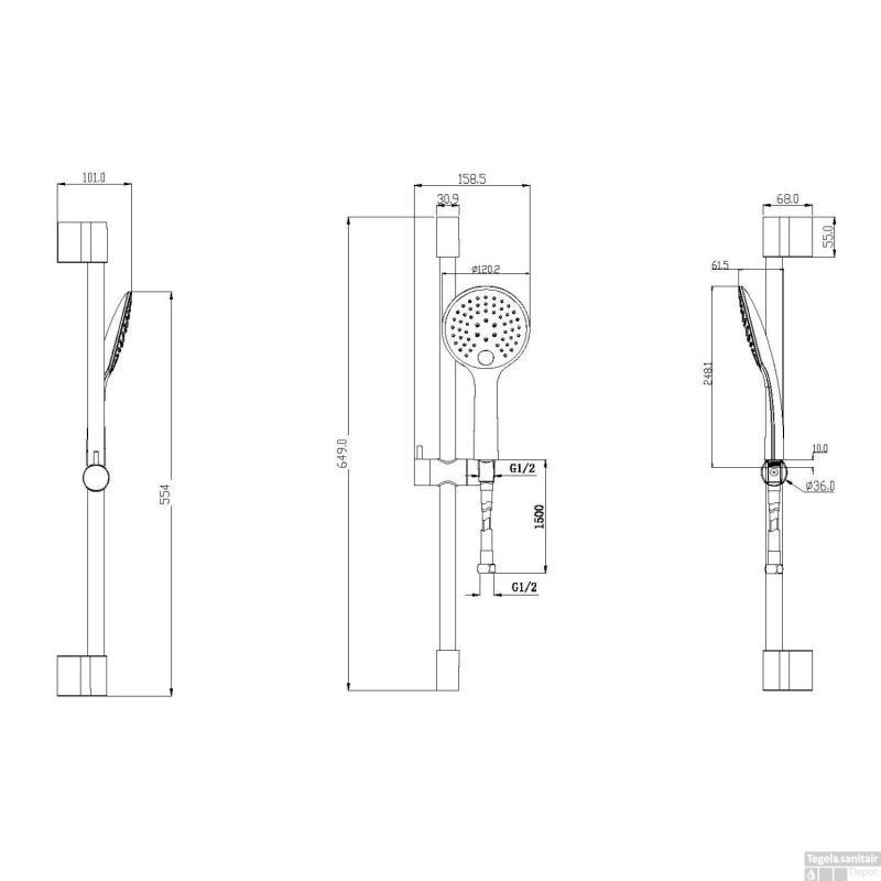 Specificaties Glijstangset met Ronde Handdouche Mat Zwart: