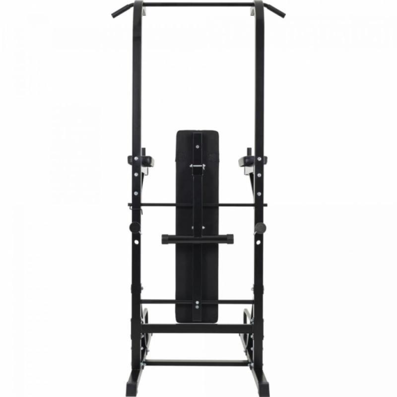 Een handige functie van dit apparaat is de ingebouwde uitklapbare halterbank. Hierdoor kun jij je bovenlichaam onderwerpen aan een volledige en intensieve workout. Het apparaat biedt oneindig veel mogelijkheden. Op de powertower kun je vele lichaamsgewichtoefeningen uitvoeren als pull-ups, dips en buikspieren. Op de halterbank kun je normaal en incline bankdrukken, buikspieroefeningen uitvoeren en alle andere mogelijke oefeningen op een fitnessbank.