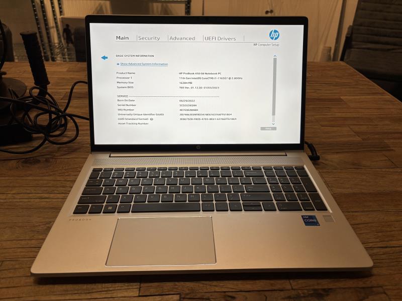 1 HP laptop, model 450 G8, Intell i7-1165G7 processor@ 2,8 GHz, 16 GB RAM met lader(Gewist en zonder software)