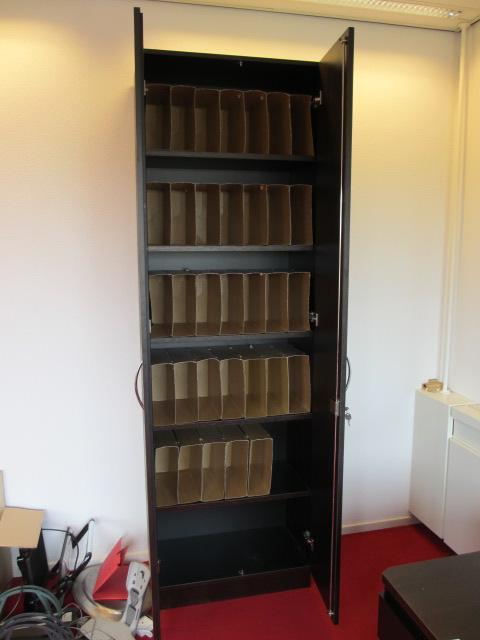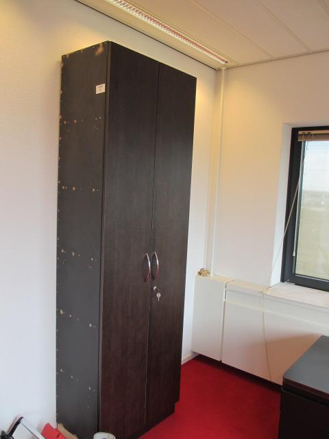 1 hoge houten 2-deurs kast (afm. ca. 120 x 275 x 40)