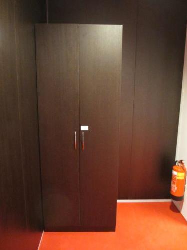 1 hoge houten 2-deurs kast (afm. ca. 75 x 230 x 40)