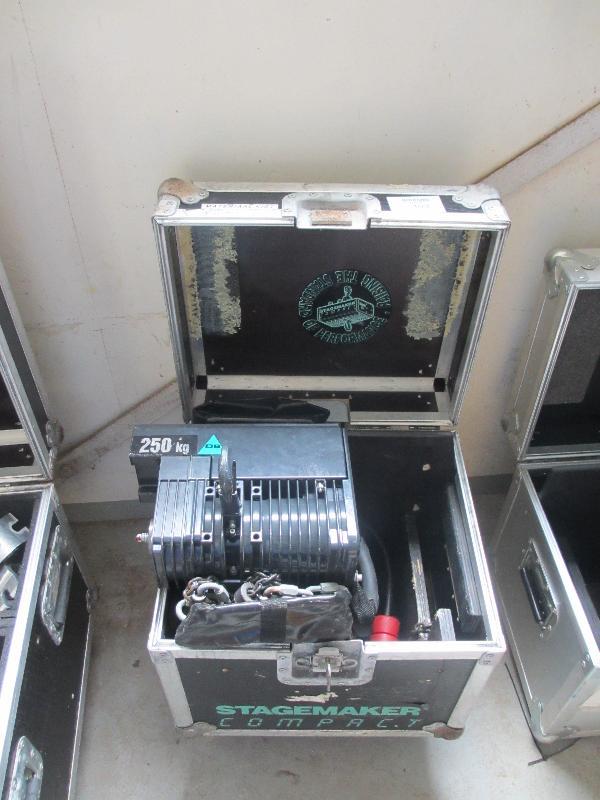 1 flightcase met Stagemaster electrische takel, cap. 250 kg (Let op! Incompleet)
