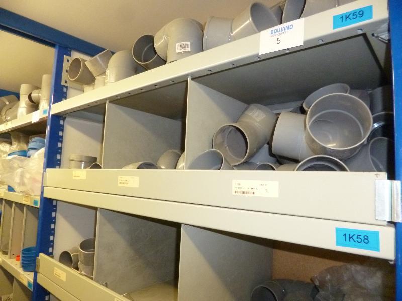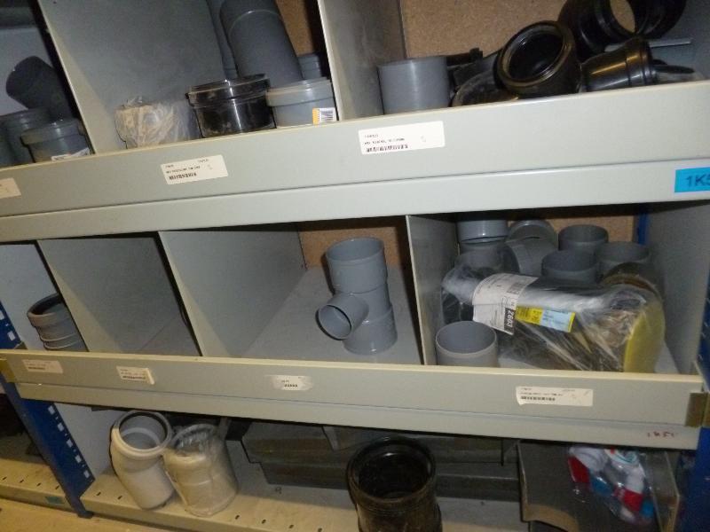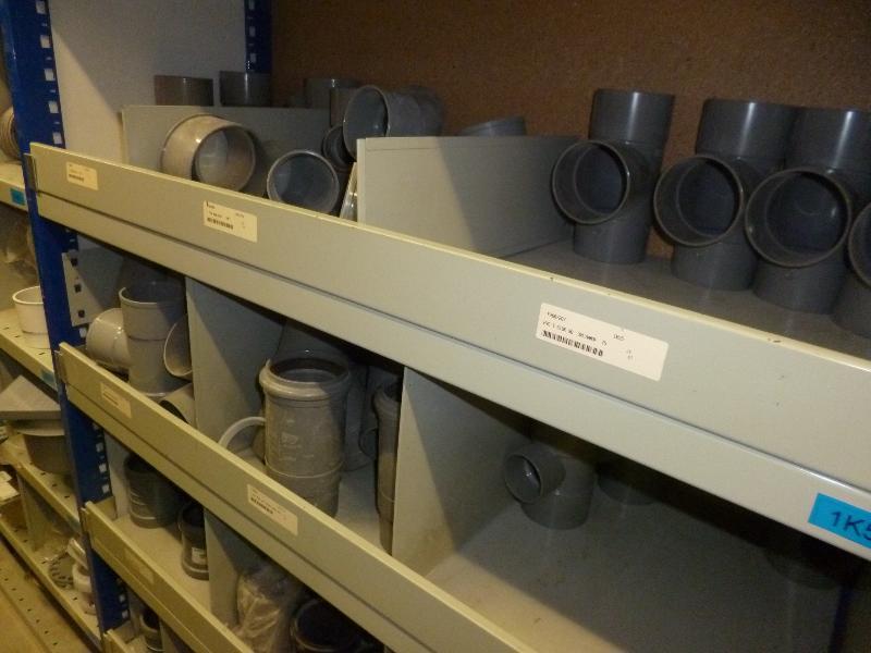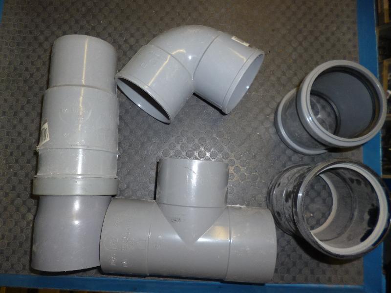 1 partij pvc fittingmateriaal, diam. 75, bochten, sifons, zadels, pijpbeugels, pvc beugels en ijzerbeugels