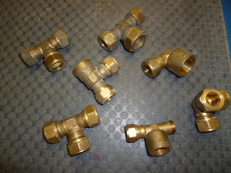 1 partij messing klemfittingen, 12/15 mm.