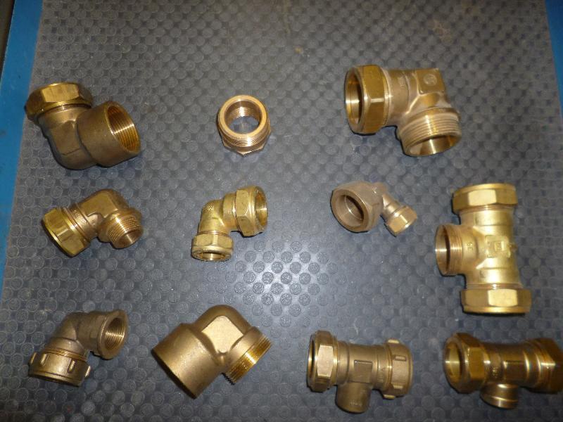 76 - 13 : 1 partij messing klemfittingen, 28/42 mm.