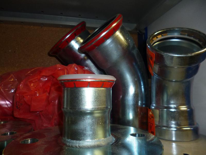 1 partij Geberit/Mapress fittingen t.b.v. centrale verwarming (grote maten)