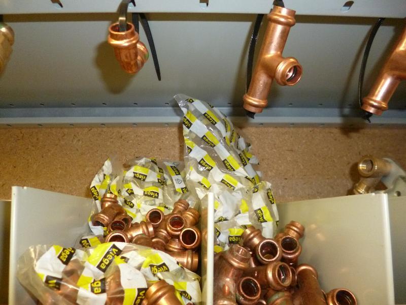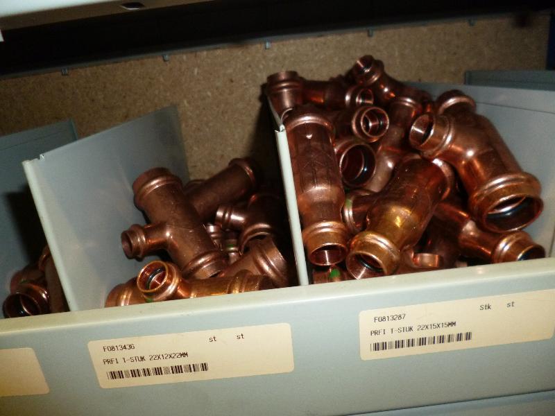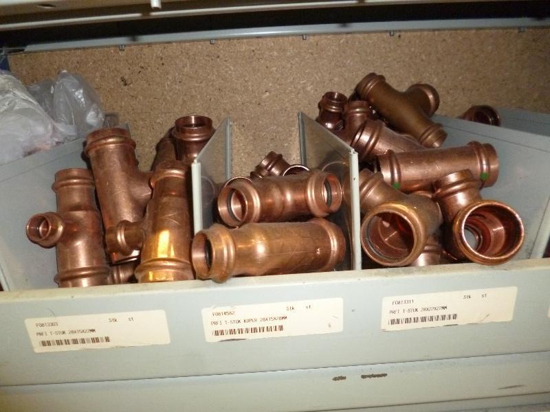 1 partij koperen waterleiding persfittingen, 12/35 mm.