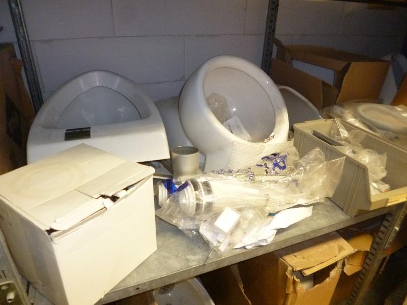 1 partij HEP 2 O buis, 16/22, 5 urinoirs, 1 wandcloset, Sphinx gootsteen, badoverloopgarnituur,1 Grohe wastafelkraan, , 1 fonteinkraan, 2 toiletzittingen, 5 Geberit inbouwreservoir urinoir, 1 tl-armatuur, 1 duoblok zonder reservoir, 1 spiegel 100 x 60
