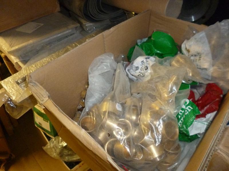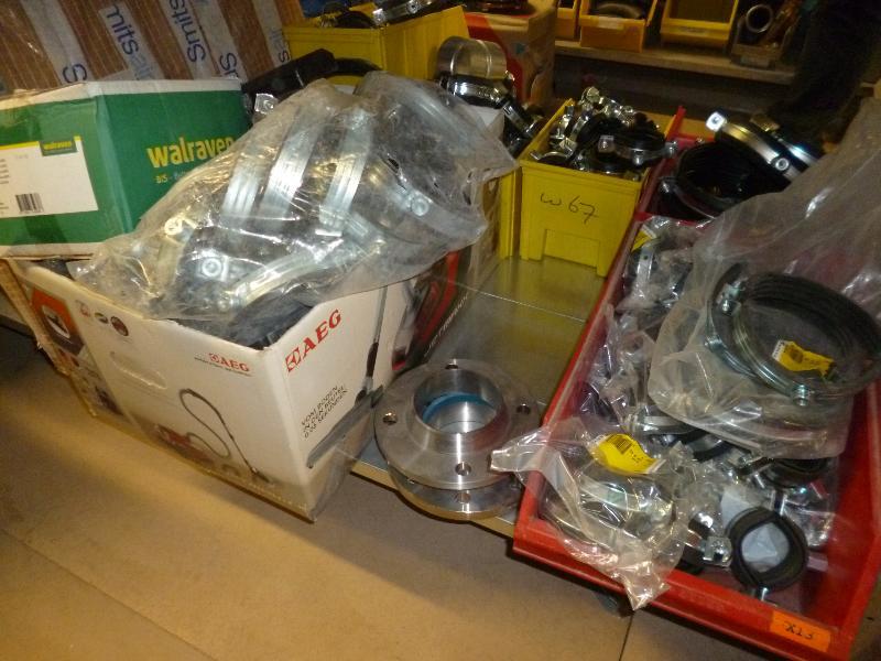 1 partij ca. 150 ventilatiemachetten, ca. 150 assortiment TECE fittingen, riool beugels 125/160