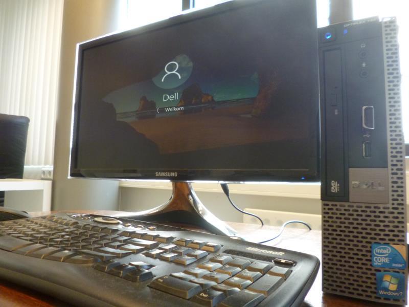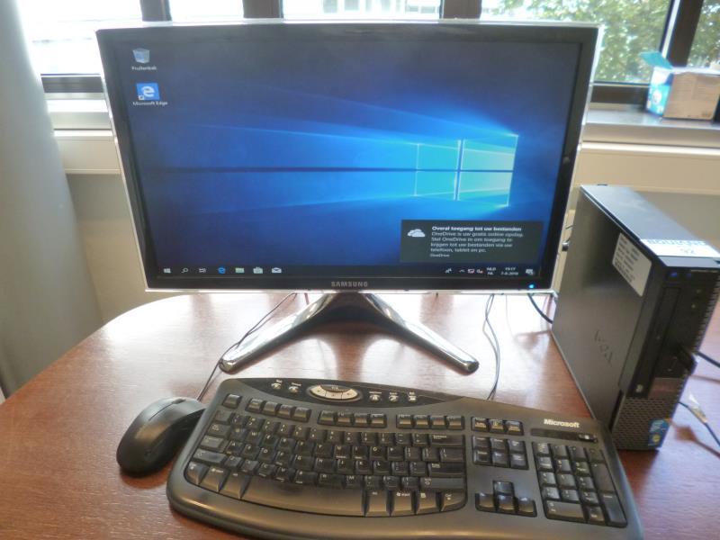 1 Dell Optiplex desktop pc, Core 2 Duo processor@ 3,3, Ghz, 4 GB RAM en 250 GB harddisk met Sasmung led monitor