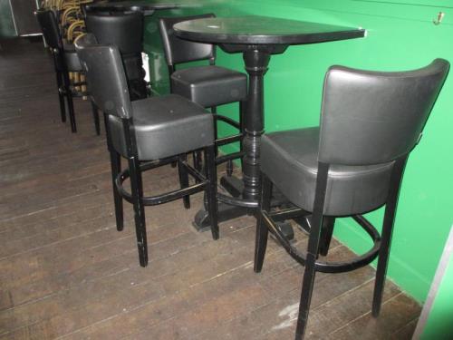 94 - 36 : 1 halfronde hoge houten tafel met 3 barstoelen