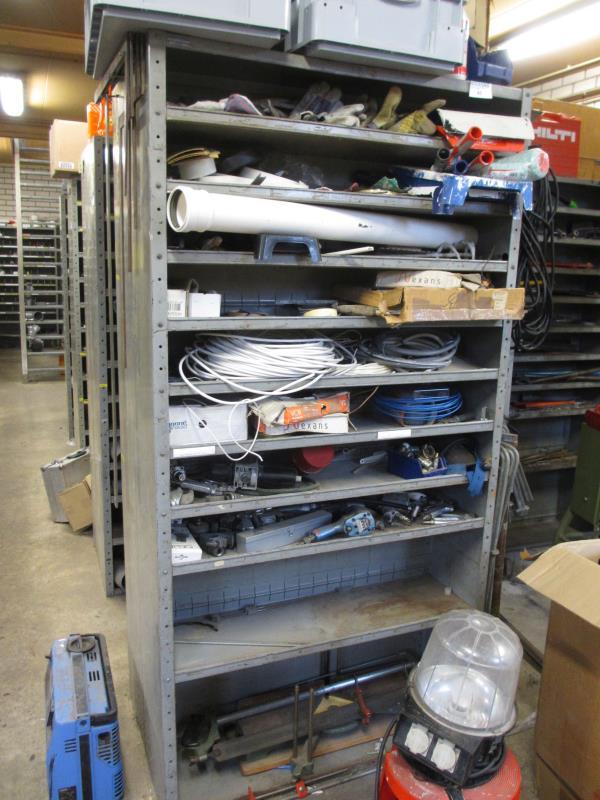 2 delen stelling met inhoud w.o. divers pneumatisch gereedschap en pvc materiaal