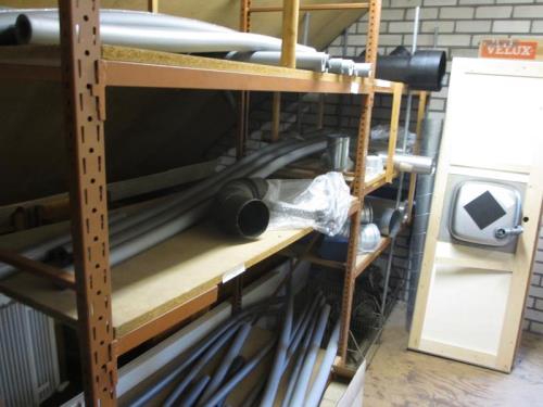 1 2-delige stelling met inhoud w.o. isolatiemateriaal, rookgasafvoer etc.