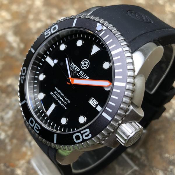 Advies verkoopprijs €350, Materiaal kast: Edelstaal Materiaal glas: Saffier Materiaal band: siliconen band Uurwerk: automatisch Seiko Functies: Draaibare bezel, datum, geschroefde kroon, Geschroefde deksel Waterdichtheid: 30ATM Afmeting kast: 44 mm (ex. kroon) Breedte band: 22mm NOS -New Old Stock. werkend met draag sporen