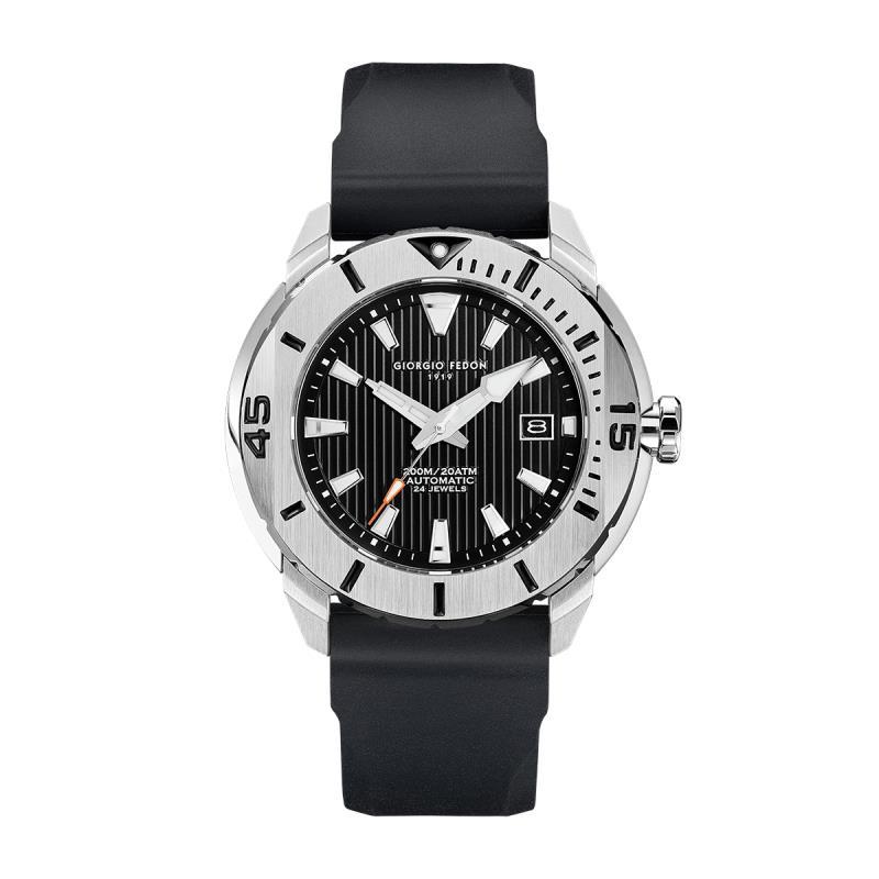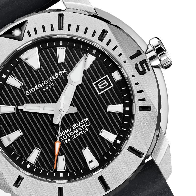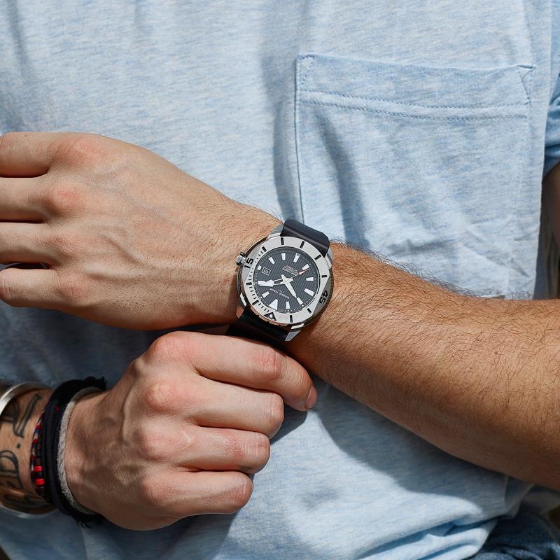 Advies verkoopprijs € 429, Materiaal kast: Edelstaal Materiaal glas: Saffierglas Materiaal band: siliconen Uurwerk: Japans automatisch uurwerk, Luminous Functies: Datumaanduiding Waterdichtheid: 20 ATM Afmeting kast: 47mm Breedte band: 20mm Staat: Nieuw