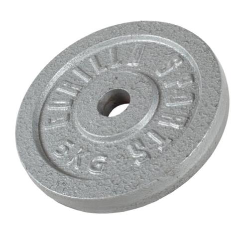 Advies verkoopprijs € 15,95 Kwaliteit Gietijzer (cast iron) Gebruik Voor professioneel gebruik, extreem hoge kwaliteit Gewicht 5 kg Kleur Grijs Afmetingen Doorsnede 20,7 cm, dikte 2,7 cm, geschikt voor 30/31 mm halterstang Gewichtsaanduiding Ja