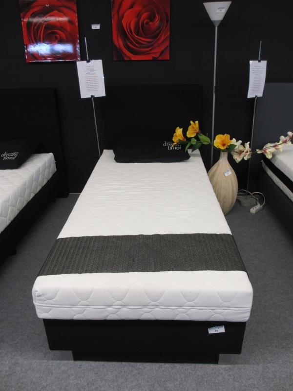1 1-persoons boxspring, afm. ca. 90 x 200 cm, inclusief hoodbord en matras.