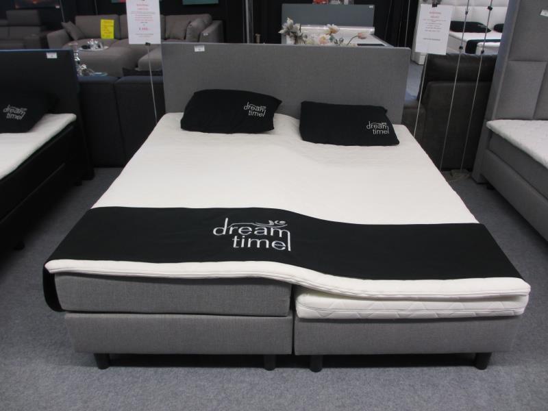 1 2-peroons boxspring, afm. ca. 180 x 200 cm., inclusief 1 orgineel matras, 1 niet orgineel matras, topdekmatras en hoofdbord