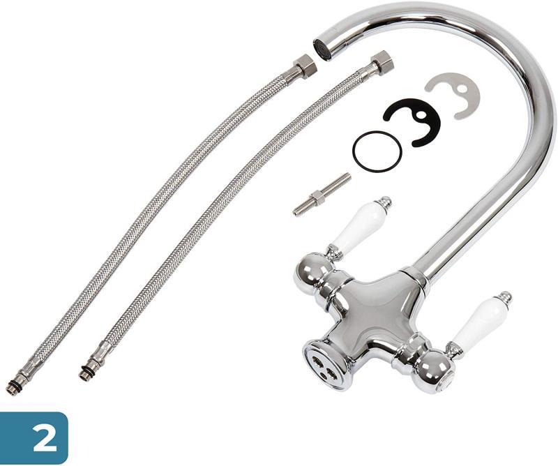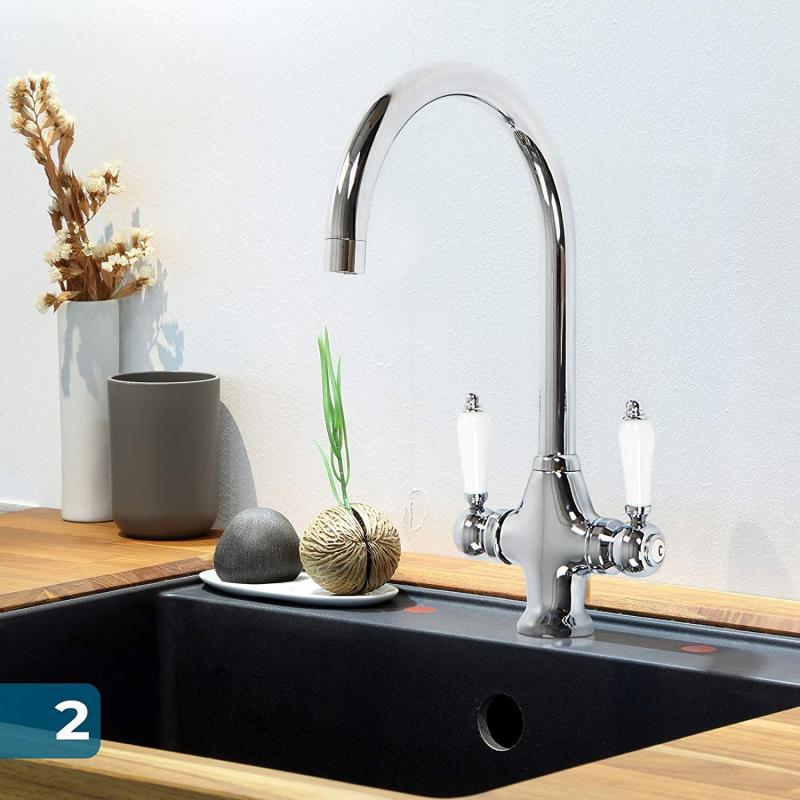 Keukenkraan met tweegreeps mengkraan met keramische patronen