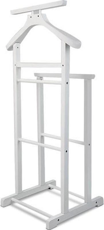 Stijlvol meubelstuk voor de moderne heer Perfect voor het ophangen van kleding, jassen en pantalons Ruimtebesparende formaat, 10KG max. draaggewicht van elke standaard Snel en eenvoudig te monteren TECHNISCHE INFORMATIE: Afmetingen L / B / H: ca. 49/40/98 cm (1,6 / 1,3 / 1m) Gewicht: ca. 2,25 kg (5 lb) Max. toelaatbaar gewicht: ca. 10 kg (22 lb) Materiaal: grenen hout, geverfd Kleur: Wit