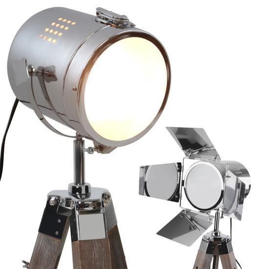 Deze vloerlamp is een echt eye-cather in elke kamer. De lamp doet denken aan een filmset of fotostudio. De praktische houten driepoot is in hoogte verstelbaar. Het licht wordt omringd door vier verchroomde metalen folies en kan 360 graden worden gedraaid, zodat je de verlichting kunt instellen precies zoals jij het wilt. De warmte van het hout en de koele elegantie van het metaal geven een decoratieve combinatie voor elke kamer.